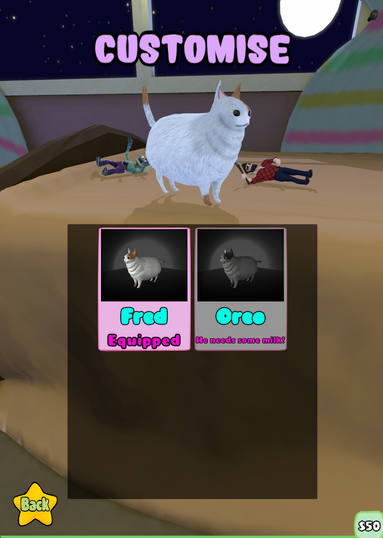 My role for Fat Cat was leading the gameplay programming and customisation systems. My main focus with gameplay revolved around player movement along and between the lanes, while Lucas, the other programmer, focused on the controls. After completion of the core gameplay loop, I moved on to the store and customization where I was able to introduce different skins that can be applied and saved to the character with some extra easter eggs for the final 2 expensive skins.